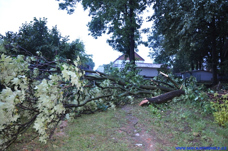 Ve večerních hodinách v sobotu 17. července 2010 se přes náš region přehnala menší vichřice a lokální deště. V naší obci vlivem silného větru došlo v vyvrácení stromů u potoka na parcele 148 a 149. Spadané stromy poškodily střechu stodoly a zablokovaly cestu mezi hlavní a vedlejší silnicí. Naše zásahová jednotka vyjela v počtu 4 hasičů v sobotu ve 20:30 hodin. Na místě zhodnotila situaci, provedla kontrolu celého toku potoku Trnávka a také retenční nádrže. S ohledem na trvající déšť se zahájení likvidace škod přesunula na nedělní ráno.